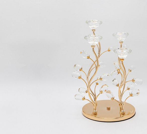Κηροπήγιο μεταλλικό 3 θέσεις Φ20Χ74 εκ. Χρυσό με κρύσταλλα και ακρυλικά – KESKOR 43217
