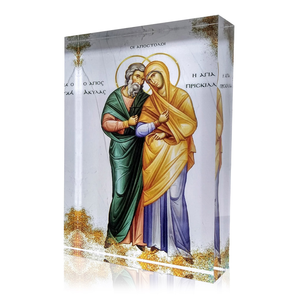 Η εικόνα του Αποστόλου Ακύλα και Πρίσκιλλας αποπνέει τον βαθύ πνευματικό συμβολισμό και την ευλάβεια. Κατασκευασμένες με τη χρήση προηγμένης τεχνολογίας τυπώματος, αυτές οι εικόνες προσφέρουν εξαιρετική ευκρίνεια και αντοχή, ενώ το plexiglass δίνει έναν μοναδικό φωτεινό χαρακτήρα που εντυπωσιάζει σε κάθε χώρο.
