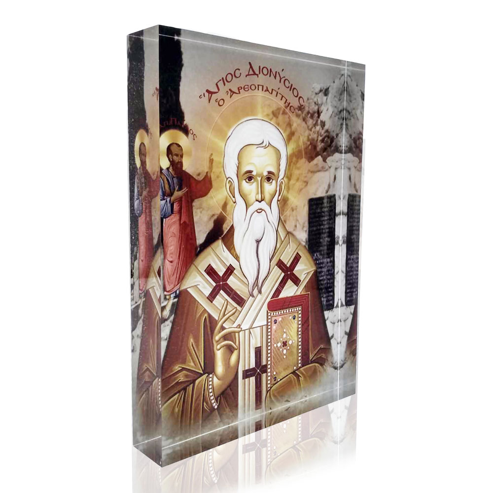 • Ο Άγιος Διονύσιος από την Αθήνα, ήταν ένας έξοχος φιλόσοφος, αρχικά ειδωλολάτρης, μέλος της Βουλής του Αρείου Πάγου που μαρτύρησε όταν αυτοκράτορας ήταν ο Δομετιανός.Όταν ο Αποστόλος Παύλος κήρυξε στους Αθηναίους στην Πνύκα, ήταν ο πρώτος που πίστεψε στον Χριστό και βαπτίσθηκε. Αργότερα, μετά τον Επίσκοπο Ιερόθεο έγινε Επίσκοπος Αθηνών ο Άγιος Διονύσιος. Έγραψε πλήθος θεολογικών συγγραμμάτων, κάποια σχετικά με την Αγιότητα, τη Βασιλεία και την Κυριότητα του Θεού (Διονυσίου Αρεοπαγίτου, «Περί Θείων Ονομάτων»).