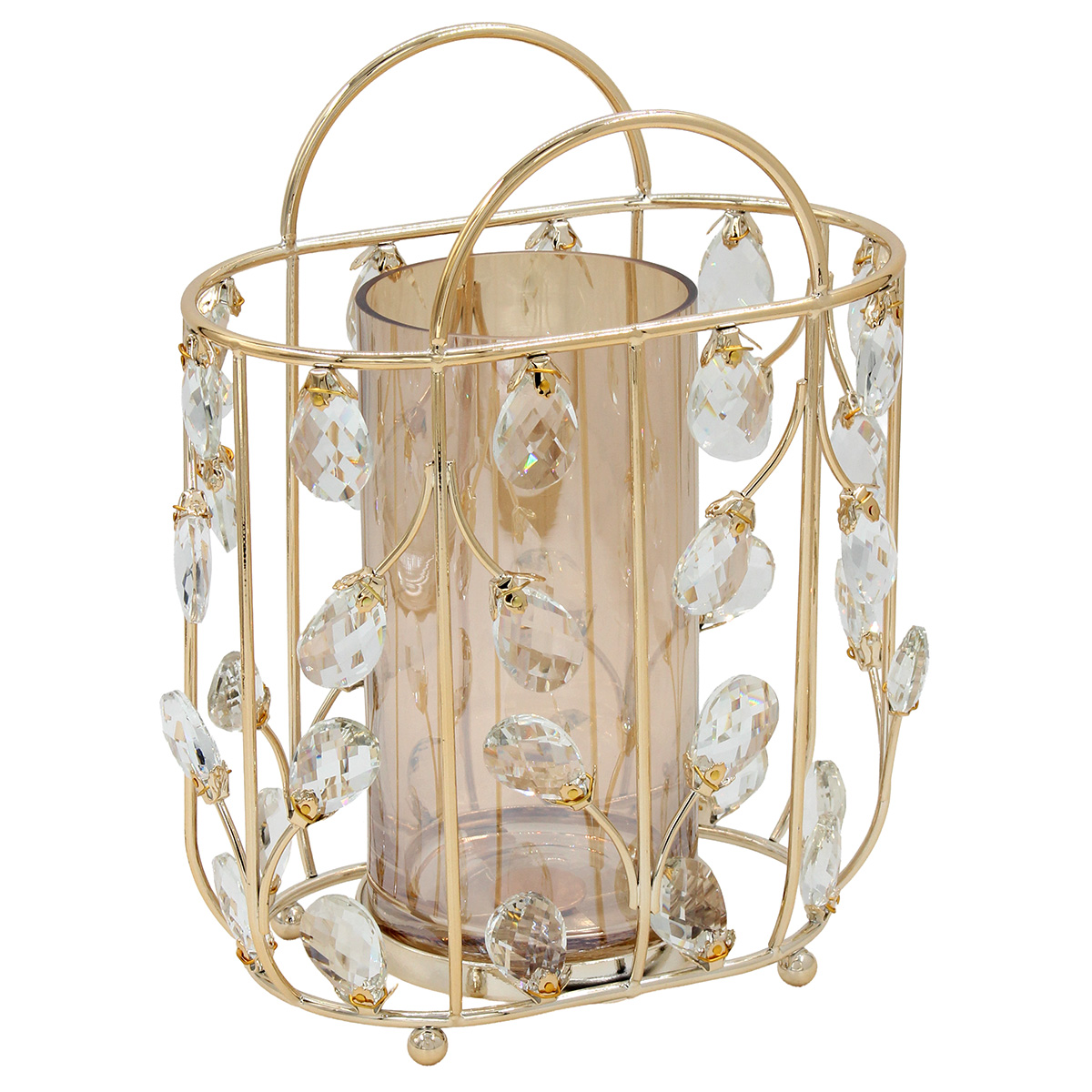 Ανθοδοχείο – Κηροπήγιο μεταλλικό 22Χ14Χ27 εκ. Τσάντα Χρυσή με κρύσταλλα