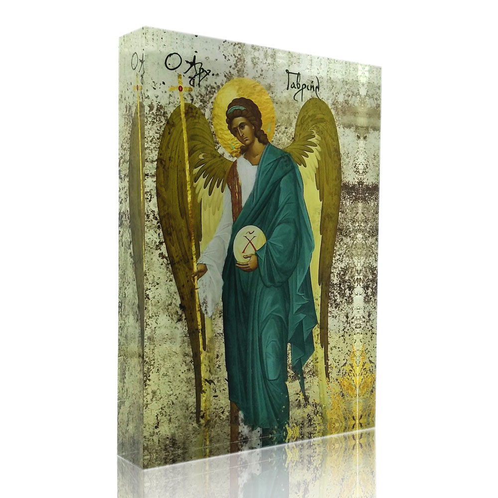 - Το όνομα Γαβριήλ σημαίνει «ήρωας του Θεού». Εμφανίστηκε στον Προφήτη Δανιήλ, στον Ιωακείμ και την Άννα, αναγγέλλοντας πως θα γεννήσουν την Παναγία, στον ιερέα Ζαχαρία, πως θα γεννηθεί ο Άγιος Ιωάννης ο Πρόδρομος. Ο Αρχάγγελος Γαβριήλ είναι αυτός με τον οποίο συνδέονται όλα τα γεγονότα που έχουν σχέση με την γέννηση του Χριστού. Έδωσε τον κρίνο στην Παναγία και της ανακοίνωσε ότι θα γεννήσει το Γιο του Θεού. Την έτρεφε με ουράνιο άρτο την, στα Άγια των Αγίων. Καθησύχασε τους φόβους του Ιωσήφ, παρουσιάστηκε στους βοσκούς, είπε στον Ιωσήφ, να φύγει με την Μαρία και το Θείο βρέφος στην Αίγυπτο και κατόπιν να επιστρέψει στο Ισραήλ. Στα νεώτερα χρόνια εμφανίστηκε ο Αρχάγγελος Γαβριήλ σε έναν μοναχό και μπροστά στην εικόνα της Παναγίας έψαλλε το “Αξιον Εστί” και με το δάχτυλό του χάραξε τον ύμνο πάνω σε μαρμάρινη πλάκα.