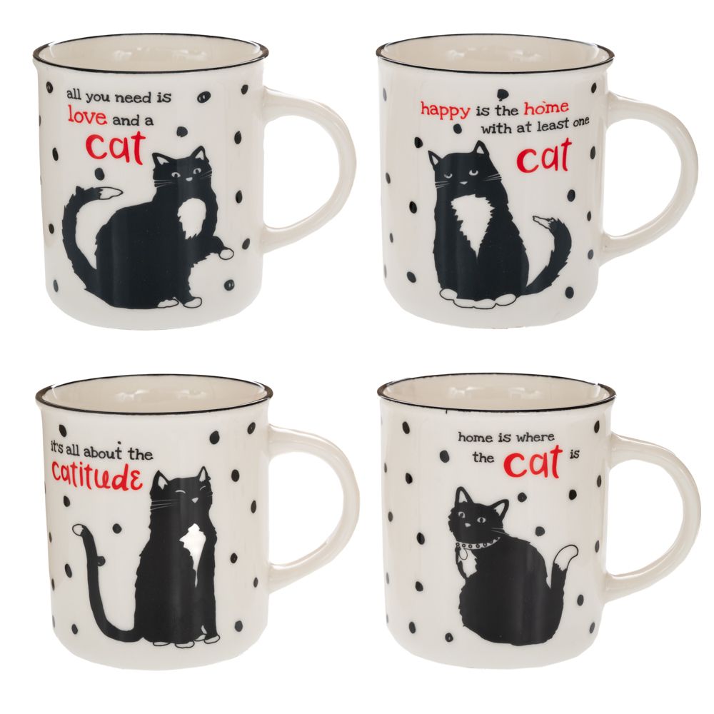 ΑΣΠΡΟΜΑΥΡΗ ΚΕΡΑΜΙΚΗ ΚΟΥΠΑ ΜΕ ΦΙΓΟΥΡΑ ΓΑΤΑΣ 330ml 4 ΣΧΕΔΙΑ