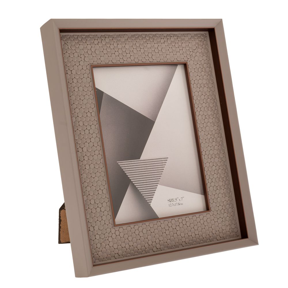 Κορνίζα πλαστική σε γκρι-καφέ χρώμα με μπρονζέ λεπτομέρειες.