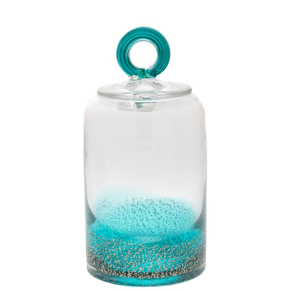 Βάζο με καπάκι διάφανο-τυρκουάζ γυάλινο φ12 22.5εκ.υψος.