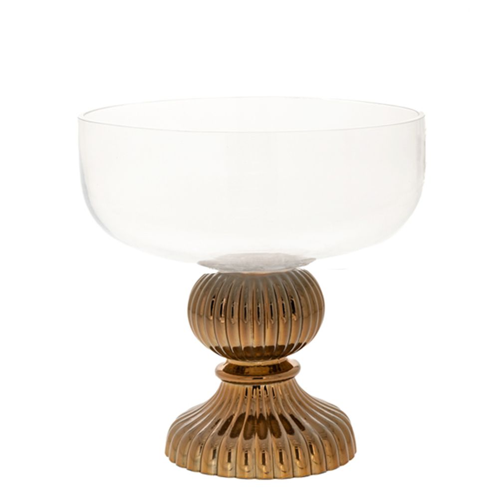Γυάλινο μπώλ διάφανο με καφέ πόδι 25χ14χ24.5εκ.υψος.