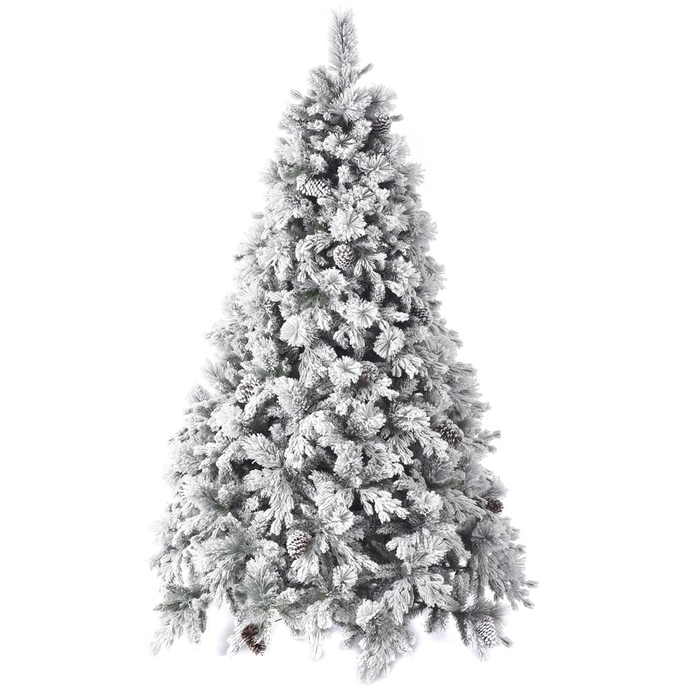 Δένδρο ALASKA χιονισμένο με κουκουνάρια. Υψος 2.10 μέτρα και διάμετρος βάσης 1.42 μέτρα. Υλικό 45% plastic και 55% pvc. Εχει συνολικά 2155 tips. Εύκολη συναρμολόγηση τύπου ομπρέλα και μεταλλική βάση.