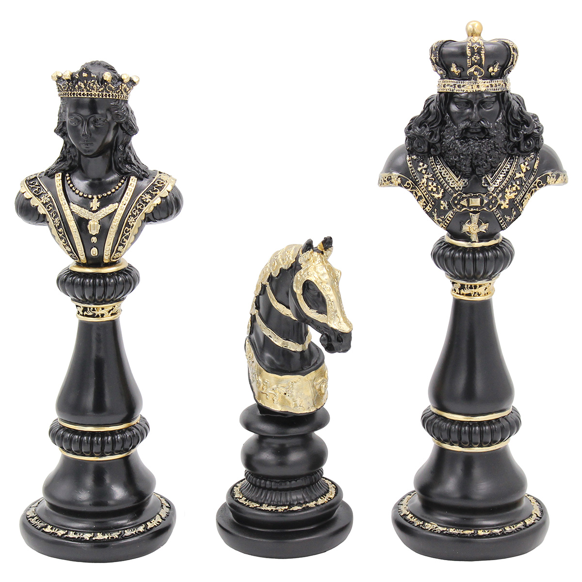 Διακοσμητικά πιόνια τεμ 3 polyresin Μαύρο Χρυσό. Το σετ περιλαμβάνει: