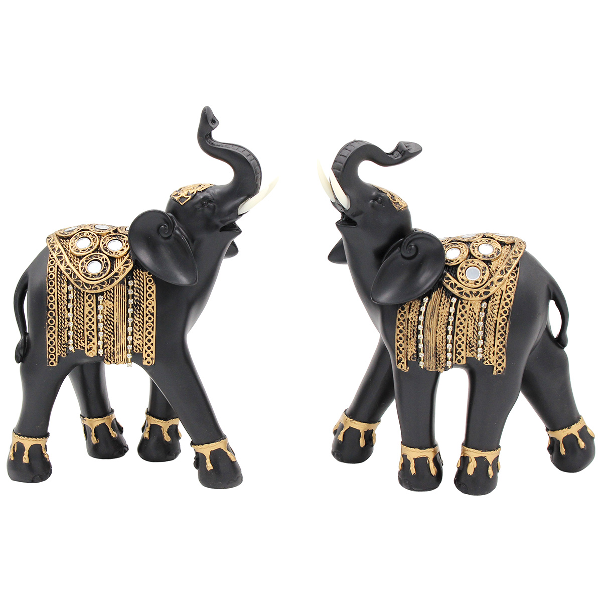 Διακοσμητικά polyresin τεμ 2 Ελέφαντες 17Χ7Χ20 – 16Χ7Χ22 εκ. Μαύρο Χρυσό