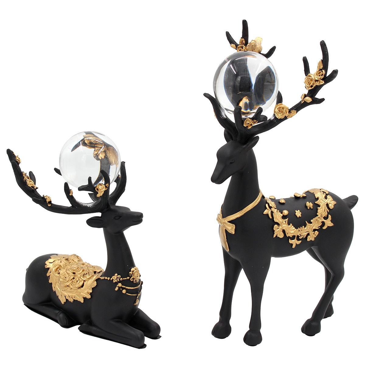 Διακοσμητικά polyresin τεμ 2 16Χ14Χ30 – 16Χ11Χ18 εκ. Ελάφια Μαύρα Χρυσά με γυάλινες μπάλες