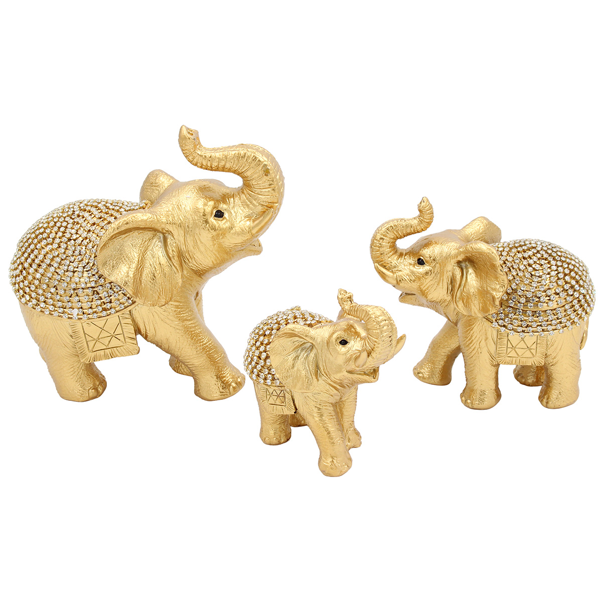 Διακοσμητικά polyresin τεμ 3 Ελέφαντες Χρυσοί με strass