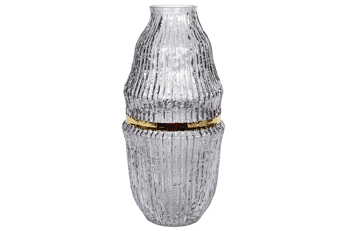 Διακοσμητικό – Ανθοδοχείο γυάλινο Φ15Χ31 εκ. φιμέ με χρυσές λεπτομέρειες