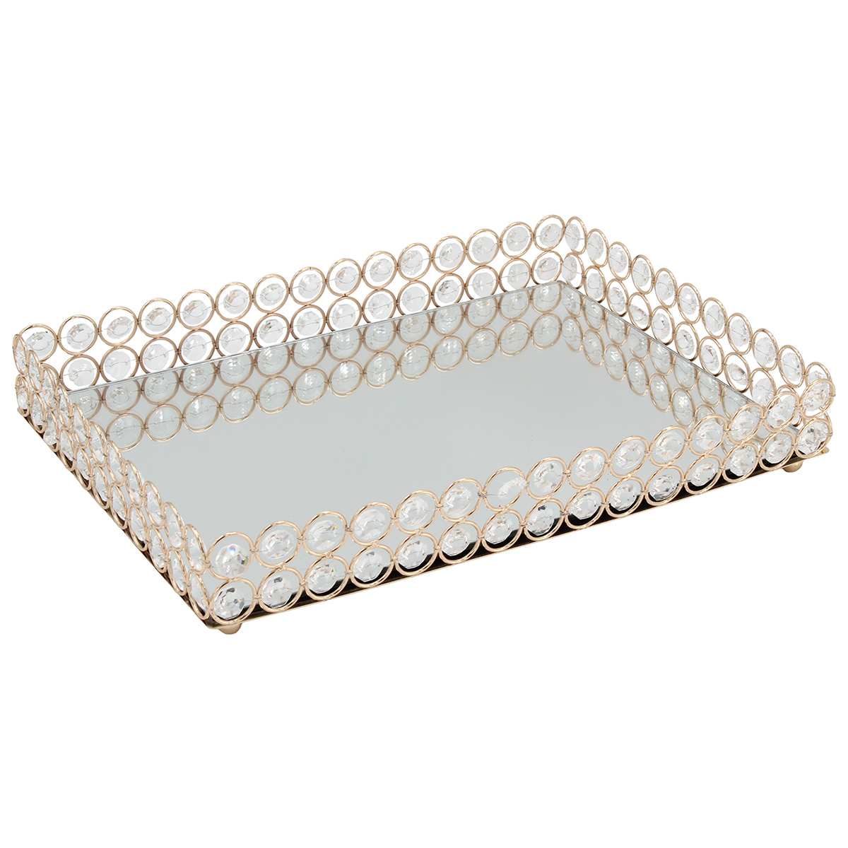 Διακοσμητικό – Δίσκος μεταλλικός ορθογώνιος 35Χ25Χ6 εκ. Χρυσός με κρύσταλλα και καθρέπτη