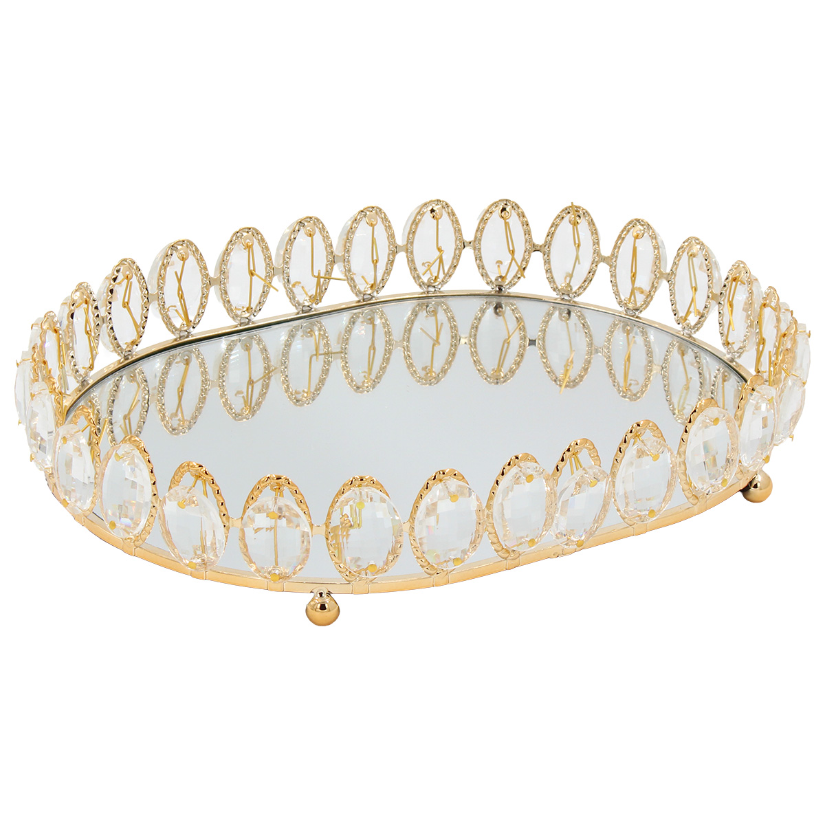 Διακοσμητικό – Δίσκος μεταλλικός 29Χ22Χ5,5 εκ. Χρυσός με καθρέπτη και κρύσταλλα