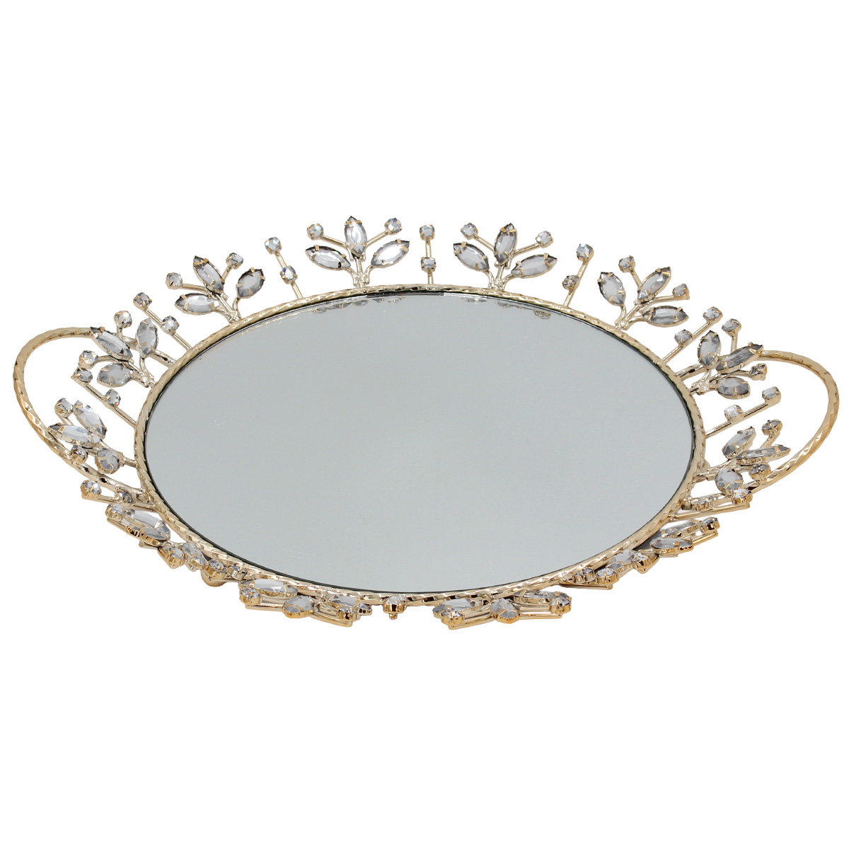 Διακοσμητικό – Δίσκος μεταλλικός 36Χ32Χ4 εκ. Χρυσός με καθρέπτη και κρύσταλλα – KESKOR 43238-3