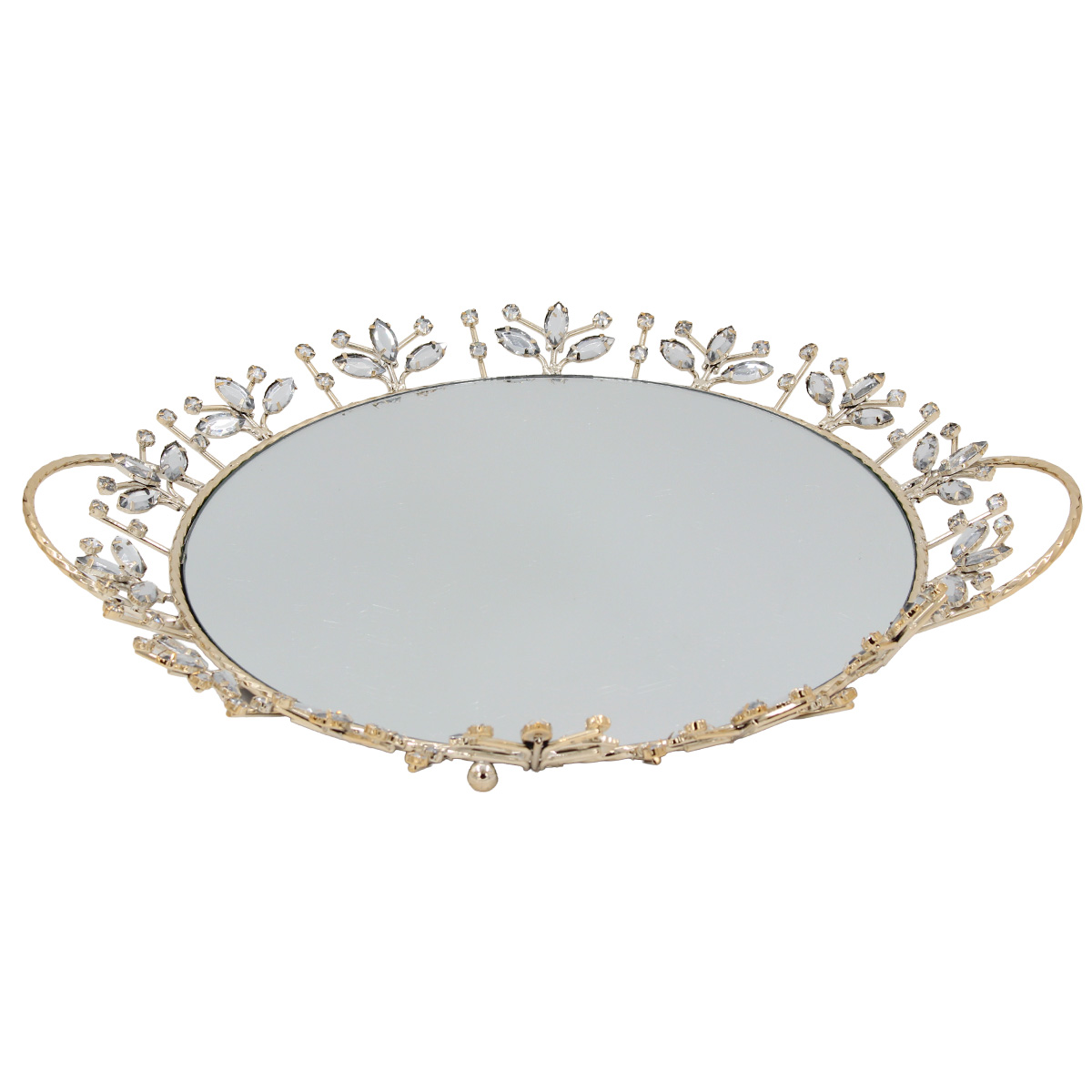 Διακοσμητικό – Δίσκος μεταλλικός 42Χ36Χ4 εκ. Χρυσός με καθρέπτη και κρύσταλλα – KESKOR 43238-2