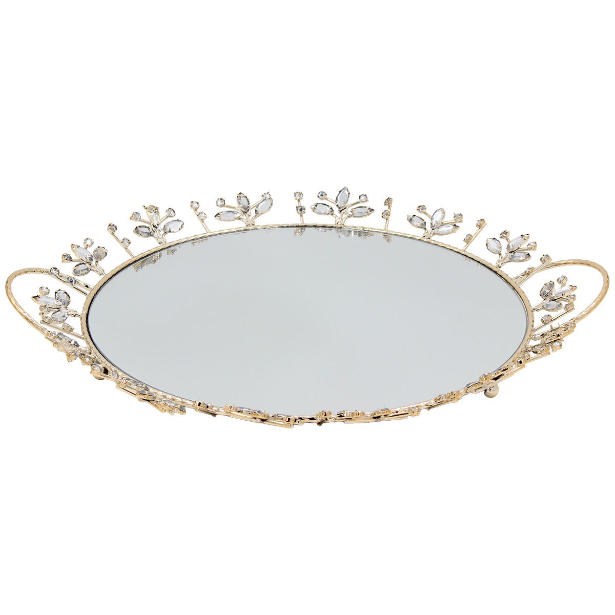 Διακοσμητικό – Δίσκος μεταλλικός 47Χ42Χ4,5 εκ. Χρυσός με καθρέπτη και κρύσταλλα