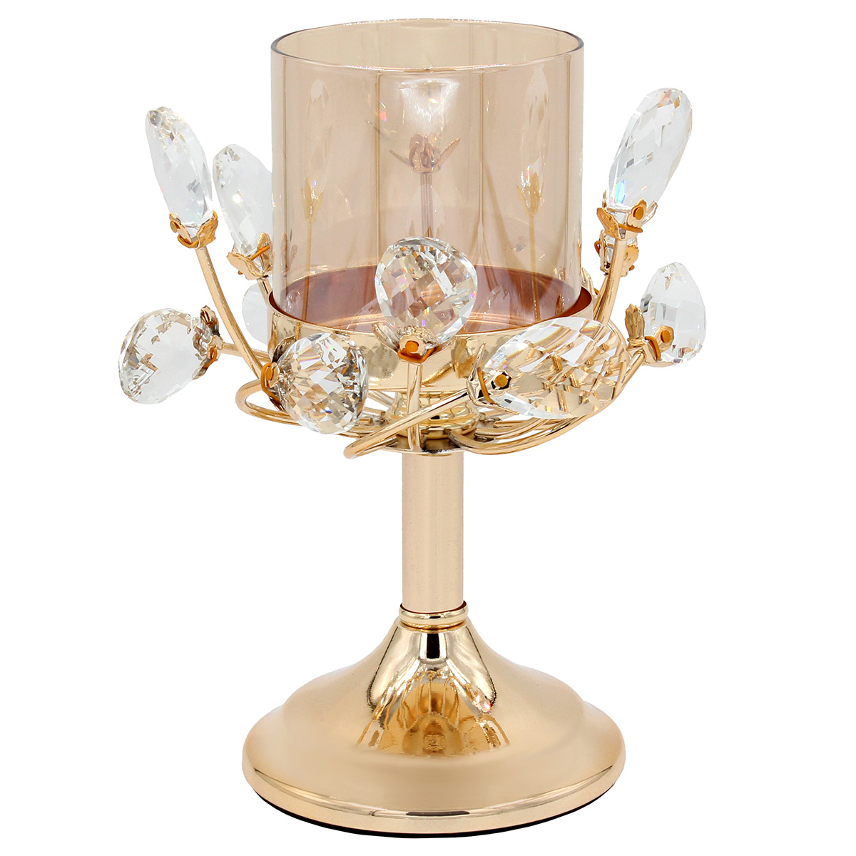 Διακοσμητικό μεταλλικό – κηροπήγιο Φ15Χ19 εκ. χρυσό με κρύσταλλα και γυαλί