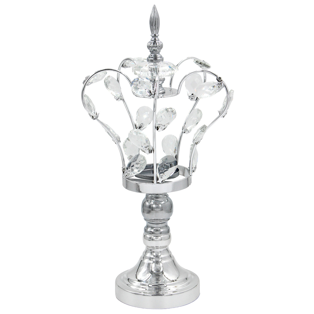 Διακοσμητικό μεταλλικό – κηροπήγιο Φ20Χ41 εκ. Κορώνα Ασημί με κρύσταλλα