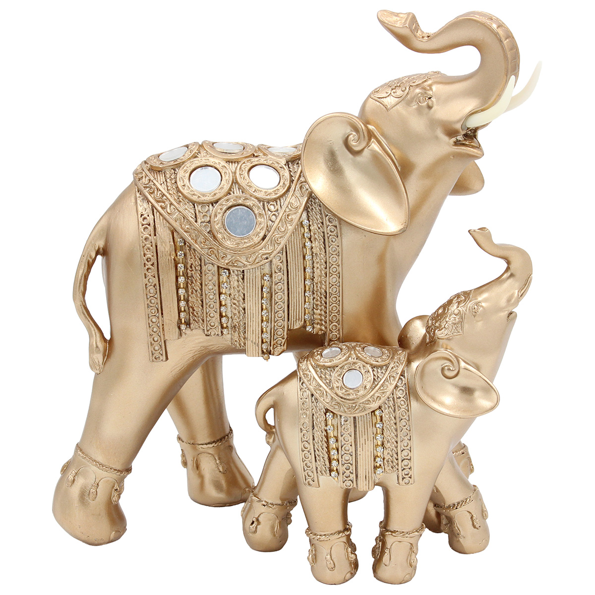 Αυτό το διακοσμητικό με χρυσούς-μπρονζέ ελέφαντες προσθέτει αριστοκρατική αίσθηση. Η αντίθεση των τόνων προσφέρει πολυδιάστατη εικόνα. Κατάλληλο για βιβλιοθήκες ή κονσόλες.