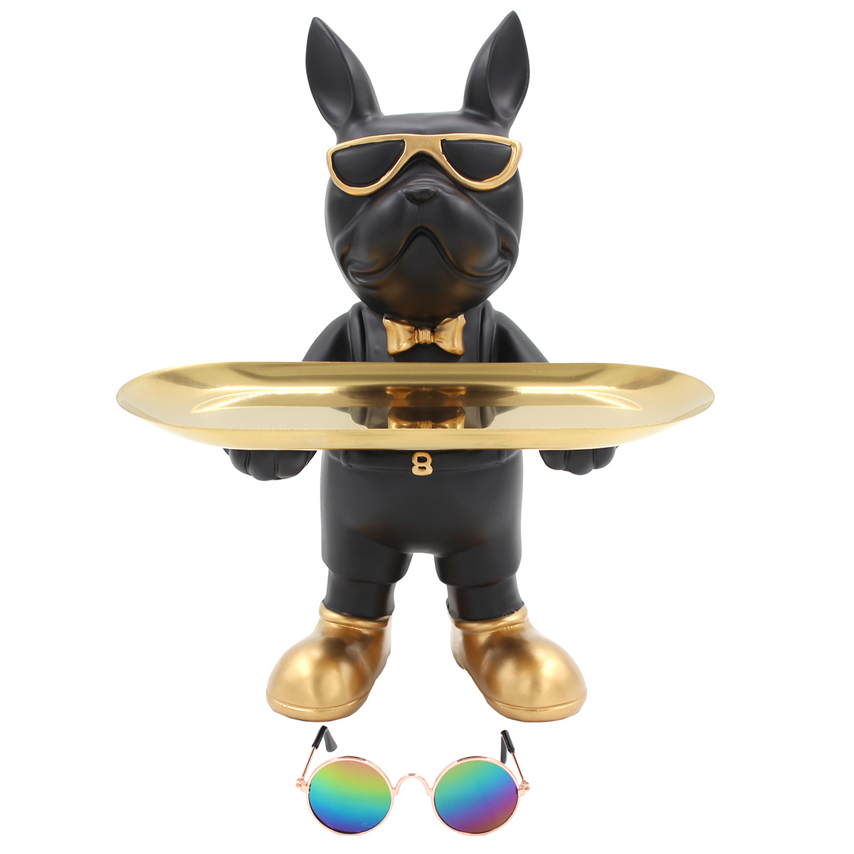 Διακοσμητικό polyresin 23Χ15Χ28 εκ. Σκύλος μαύρο χρυσό με μεταλλικό δίσκο