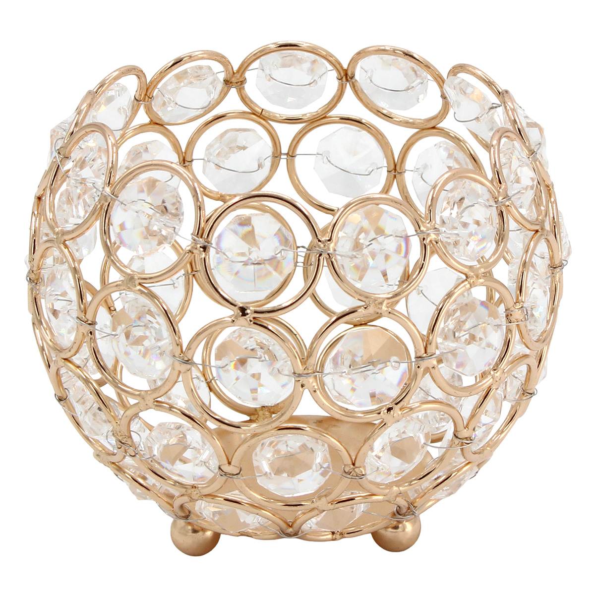 Κηροπήγιο – Διακοσμητικό μεταλλικό Φ10Χ8 εκ. Χρυσό με κρύσταλλα