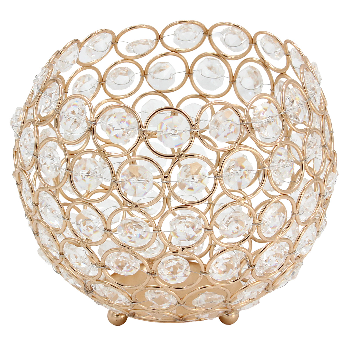Κηροπήγιο – Διακοσμητικό μεταλλικό Φ15Χ13 εκ. Χρυσό με κρύσταλλα