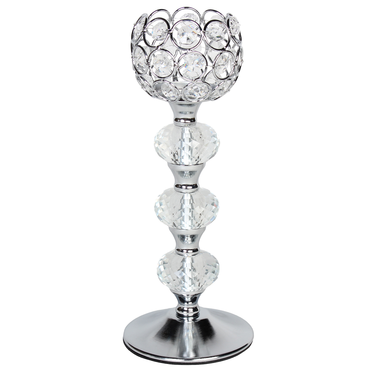 Κηροπήγιο μεταλλικό Φ10,5Χ26 εκ. ασημί με κρύσταλλα