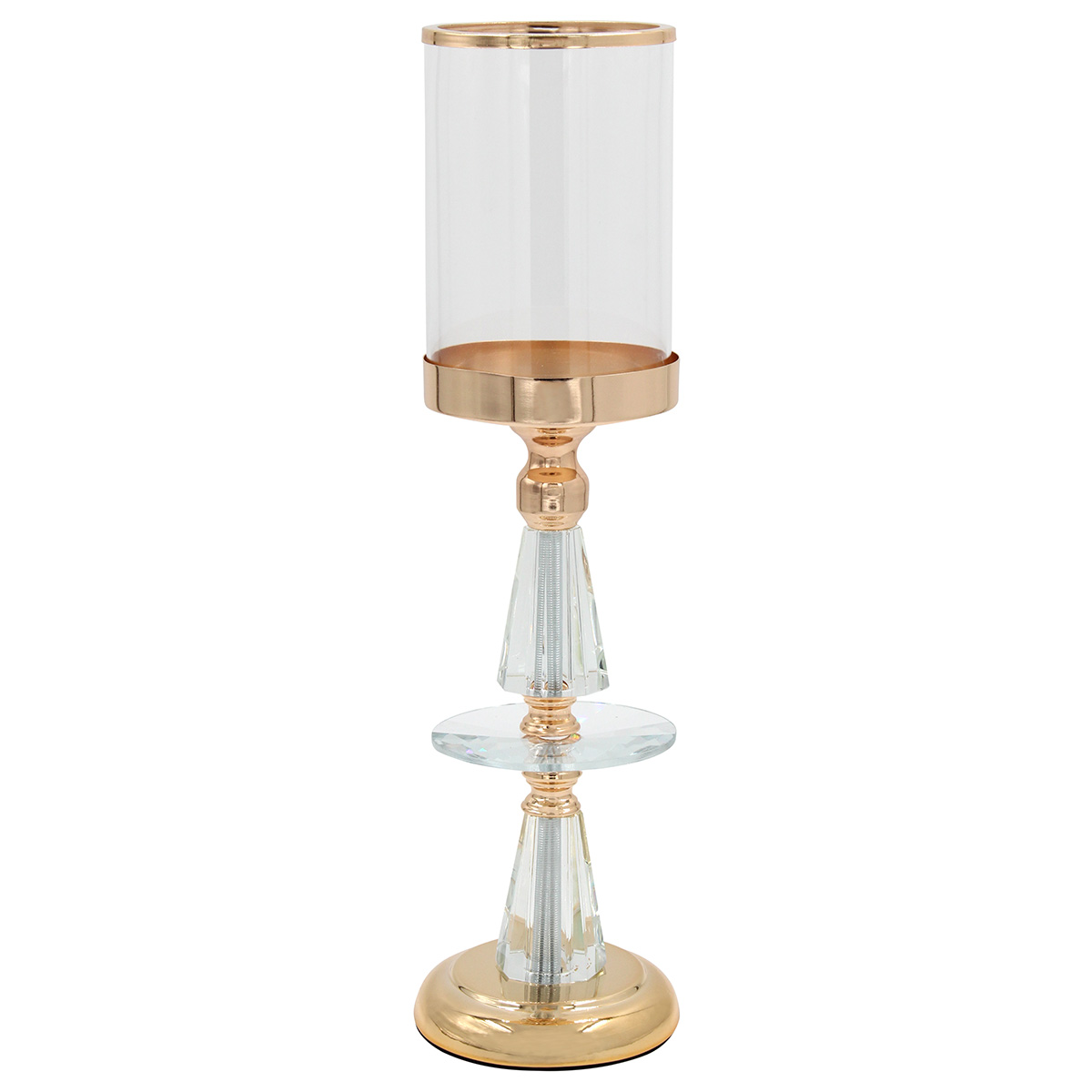 Κηροπήγιο μεταλλικό Φ11Χ41 εκ. Χρυσό με κρύσταλλα και γυαλί