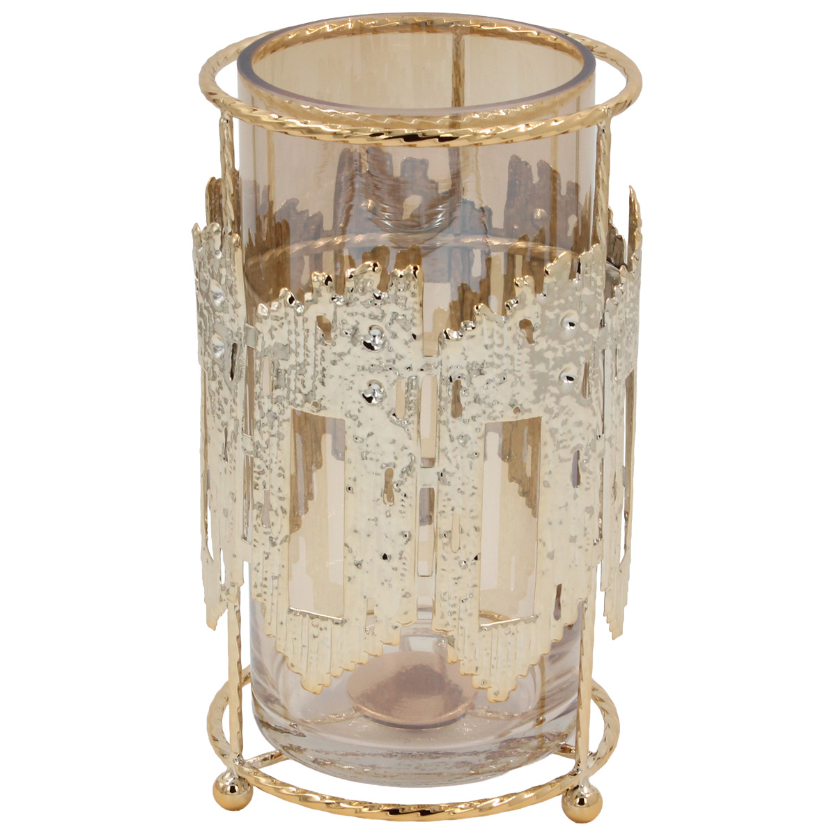 Κηροπήγιο μεταλλικό Φ12Χ21 εκ. Χρυσό με μελί γυαλί
