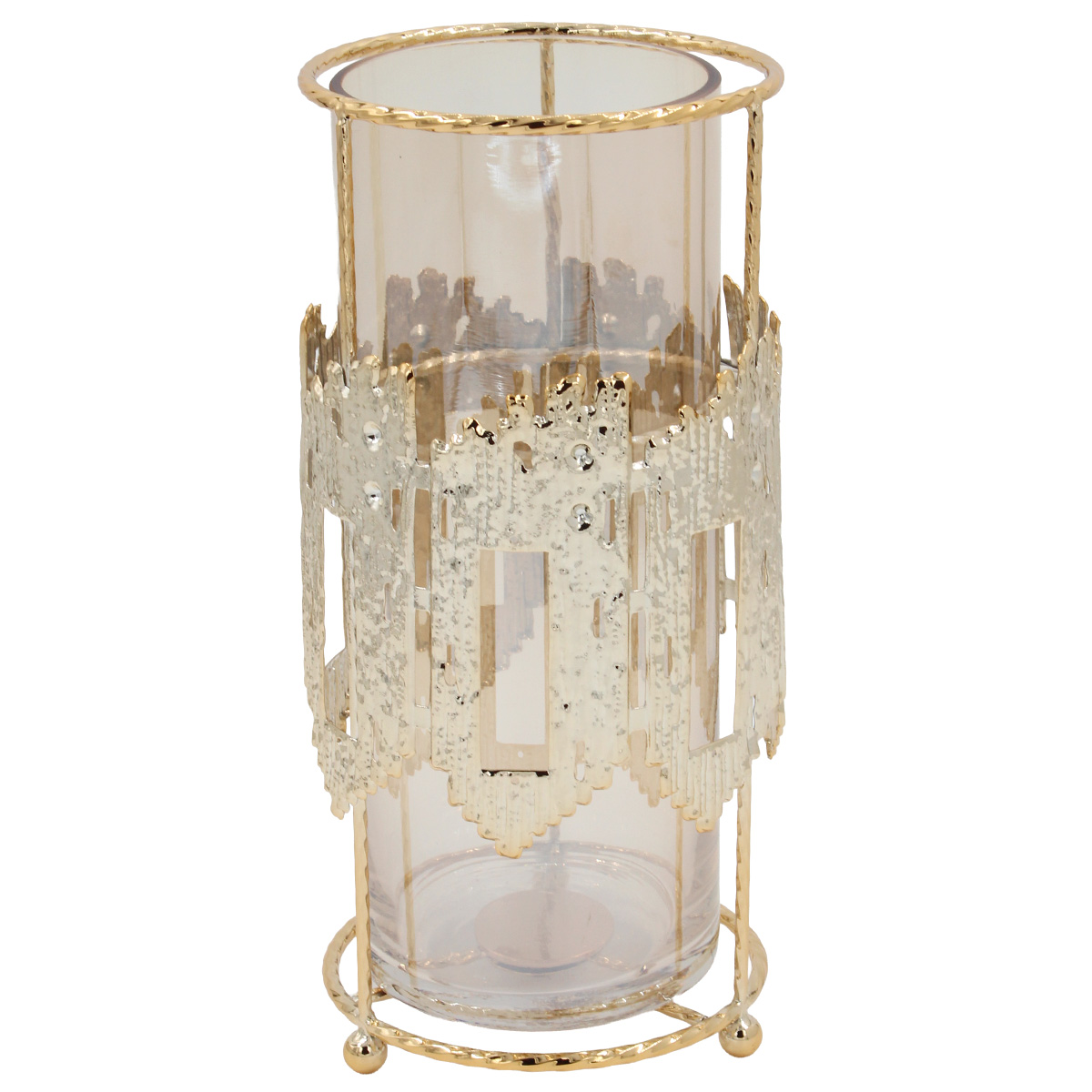 Κηροπήγιο μεταλλικό Φ12Χ26 εκ. Χρυσό με μελί γυαλί