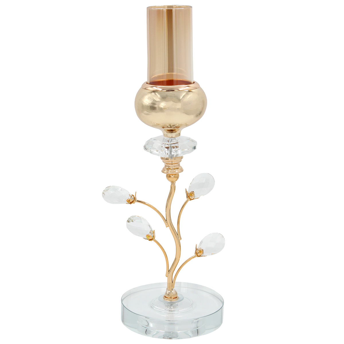 Κηροπήγιο μεταλλικό Φ12Χ36 εκ. Χρυσό με κρύσταλλα και μελί γυαλί