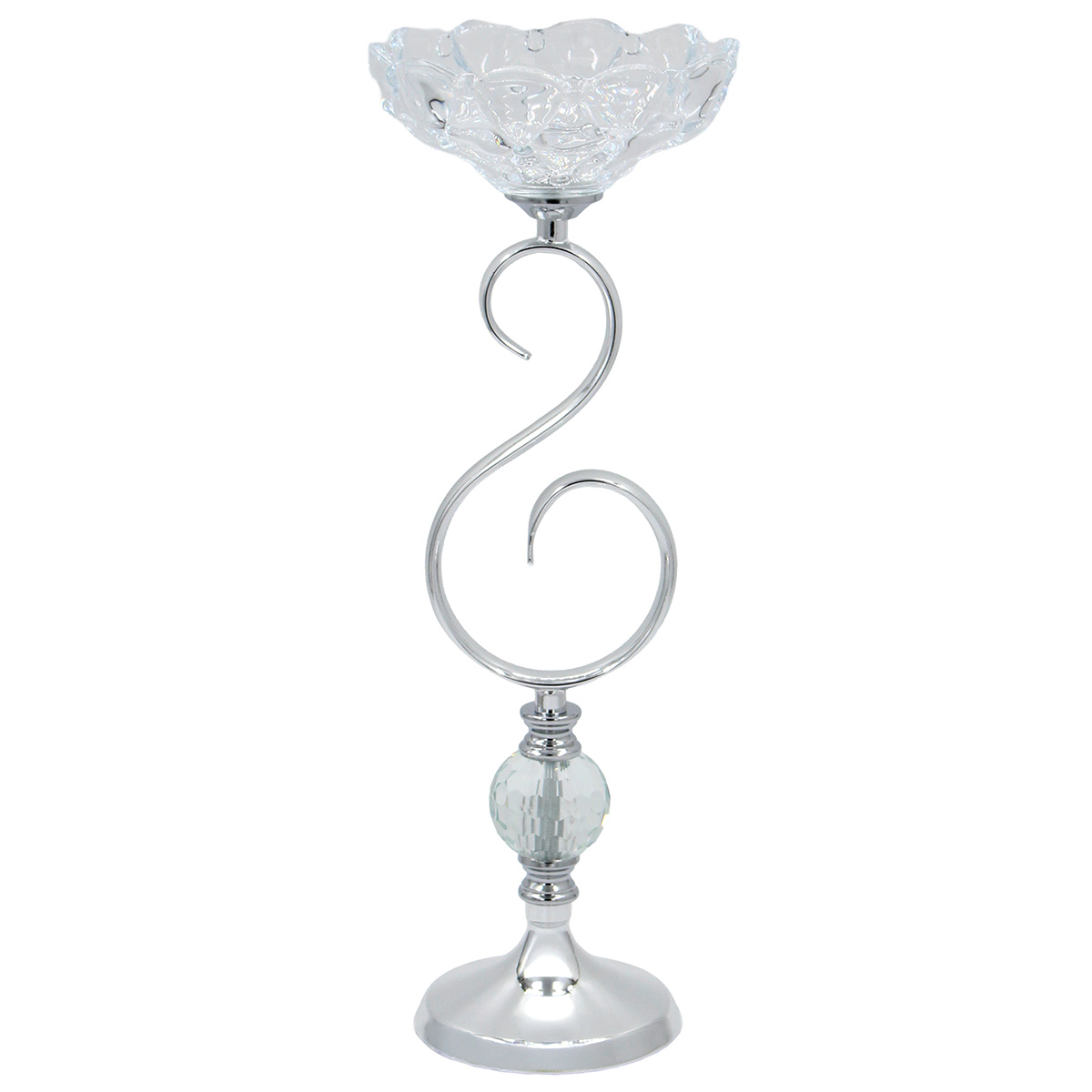 Κηροπήγιο μεταλλικό Φ15Χ41 εκ. Ασημί με γυαλί και κρύσταλλο – KESKOR 43174