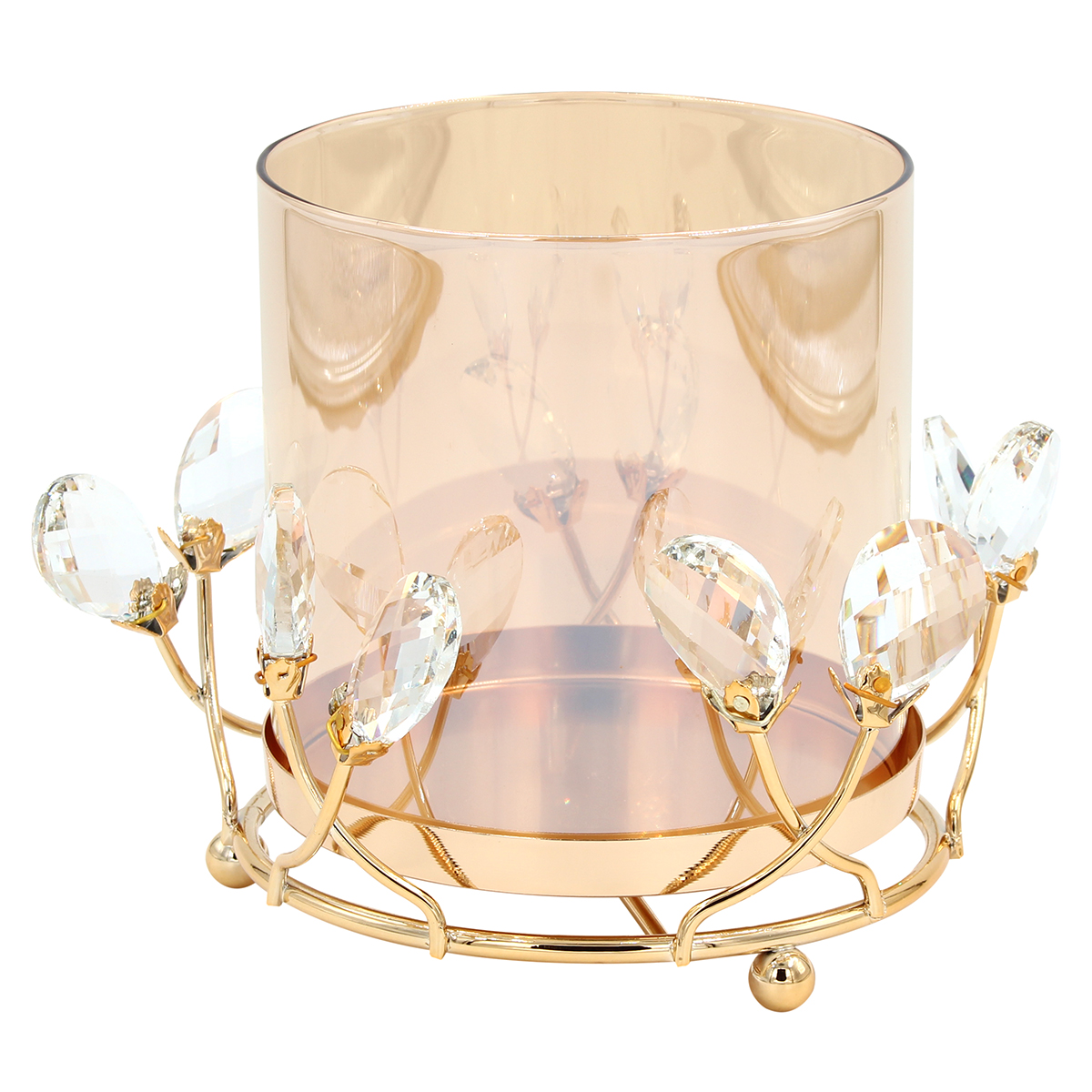 Κηροπήγιο μεταλλικό Φ16Χ14 εκ. Χρυσό με κρύσταλλα και μελί γυαλί