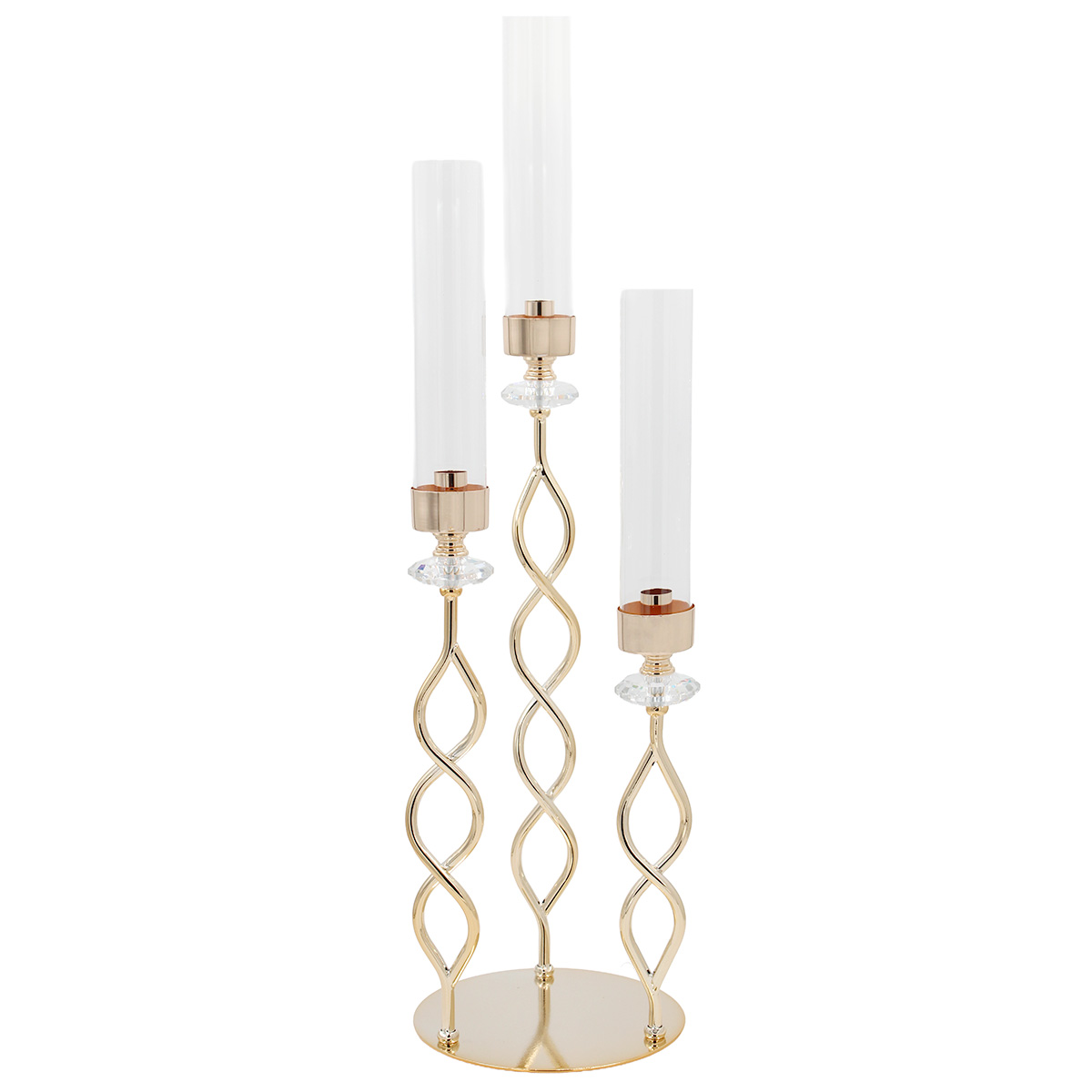 Κηροπήγιο μεταλλικό 3 θέσεις Φ20Χ74 εκ. Χρυσό με κρύσταλλα και ακρυλικά