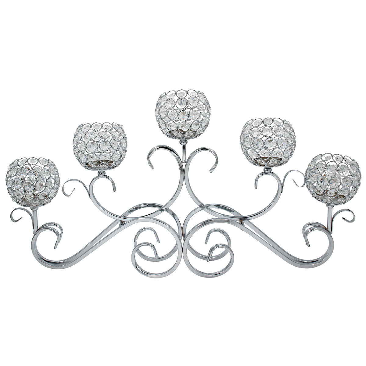Κηροπήγιο μεταλλικό 5 θέσεις 68Χ10Χ35 εκ. Ασημί με κρύσταλλα – KESKOR 52015