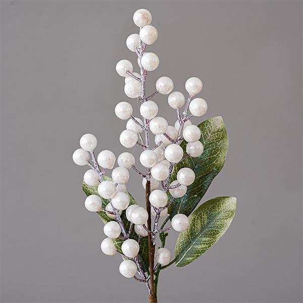 ΚΛΑΔΙ ΜΕ ΛΕΥΚΑ ΔΙΑΚΟΣΜΗΤΙΚΑ ΚΑΙ ΠΡΑΣΙΝΑ ΦΥΛΛΑ, 35cm