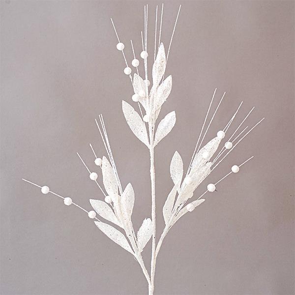 ΚΛΑΔΙ ΜΕ ΦΥΛΛΑ ΚΑΙ ΛΕΥΚΑ ΔΙΑΚΟΣΜΗΤΙΚΑ, ΜΕ GLITTER, 72cm