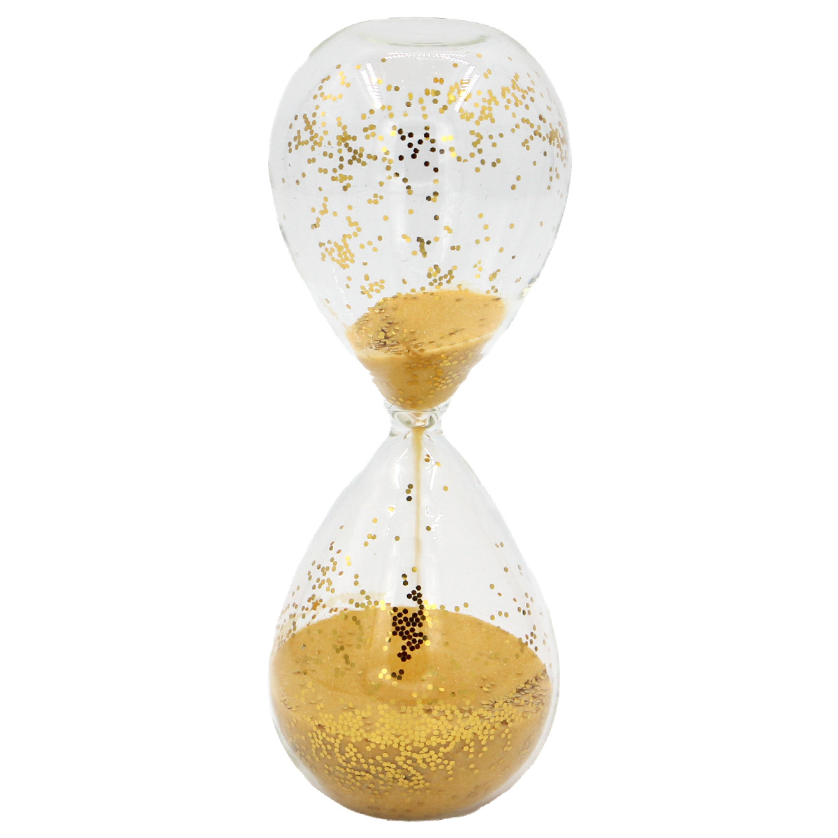 Κλεψύδρα γυάλινη διακοσμητική Φ6Χ16 εκ. Διάφανη με Χρυσή άμμο και γκλίτερ
