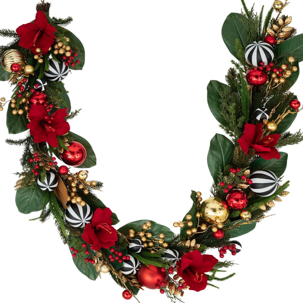 ΚΟΚΚΙΝΗ ΓΙΡΛΑΝΤΑ ΜΕ ΤΕΧΝΗΤΑ ΑΝΘΗ ΚΑΙ ΚΟΚΚΙΝΕΣ ΜΠΑΛΕΣ 23Χ15Χ183ΕΚ