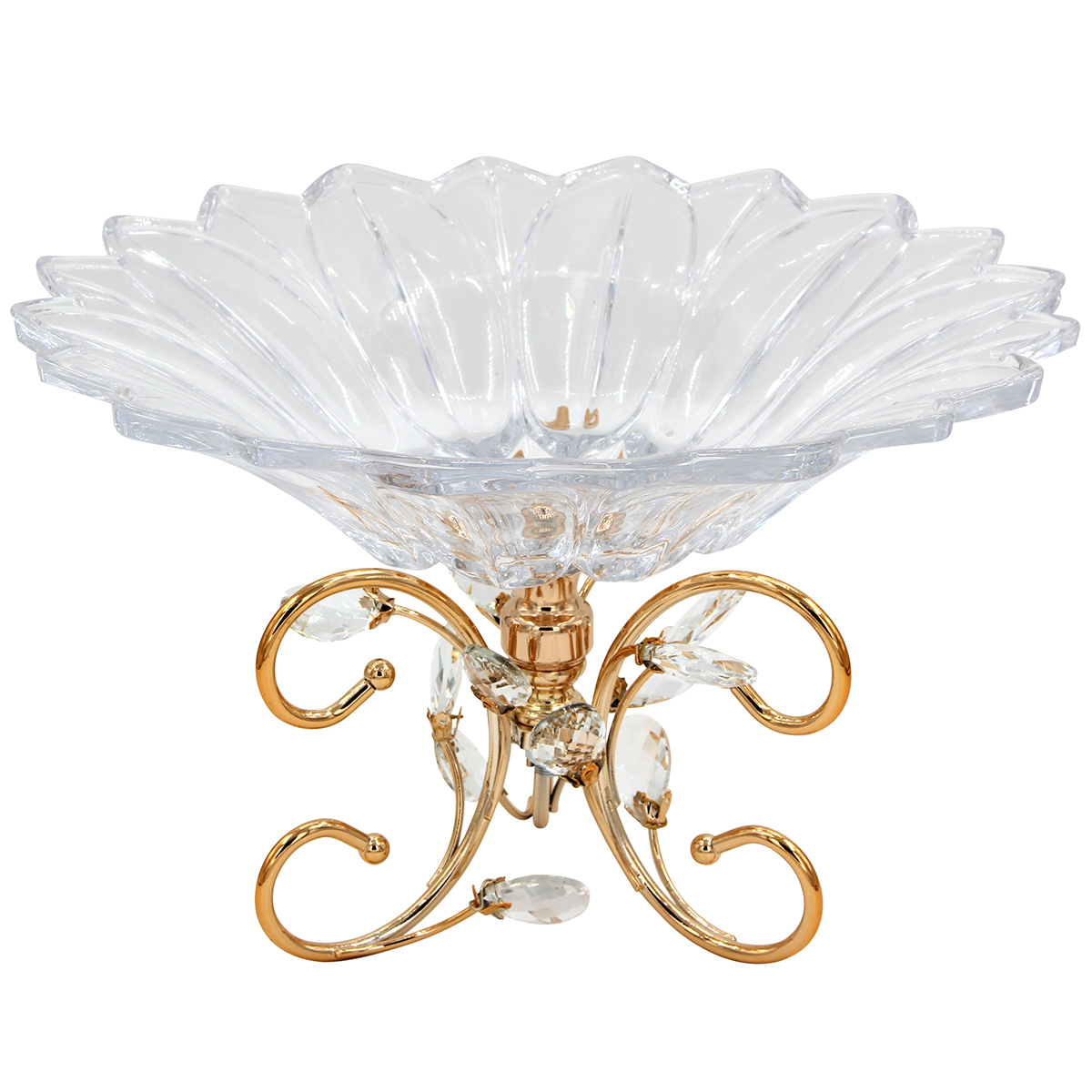 Κουπ γυάλινο κολωνάτο Φ32Χ21 εκ. με Χρυσή μεταλλική βάση και κρύσταλλα