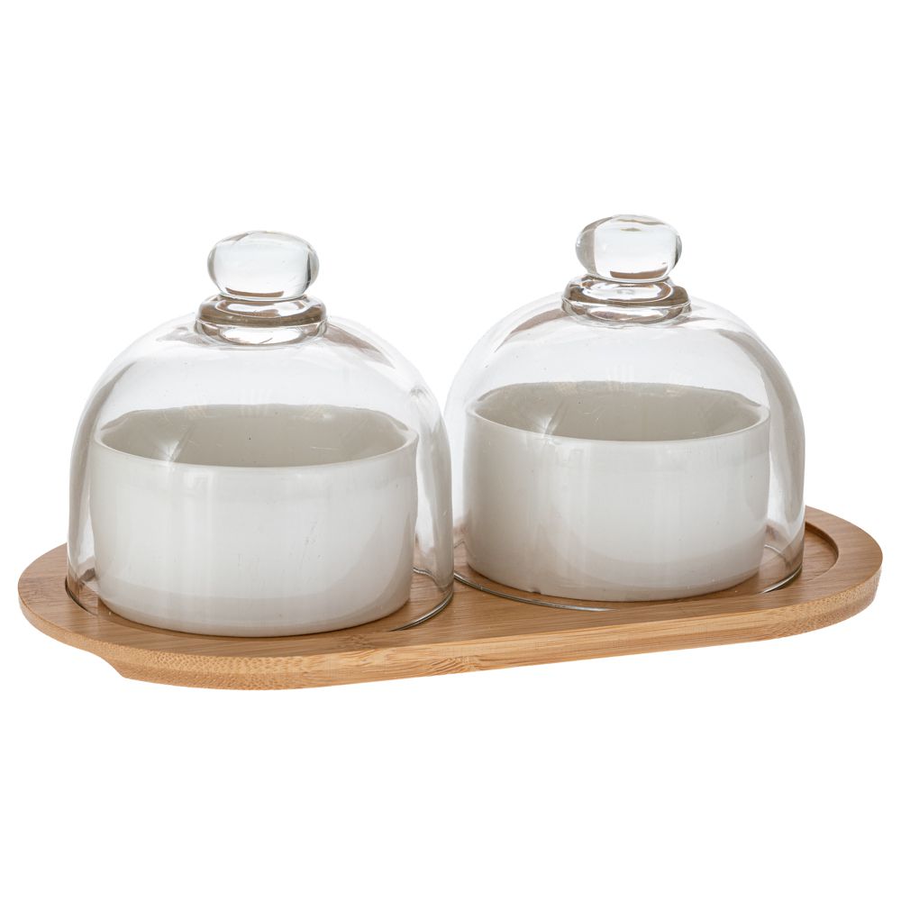 ΛΕΥΚΑ ΚΕΡΑΜΙΚΑ ΜΠΩΛ ΣΕΡΒΙΡΙΣΜΑΤΟΣ ΜΕ ΓΥΑΛΙΝΟ ΚΑΠΑΚΙ ΣΕ BAMBOO ΒΑΣΗ 24Χ12Χ10ΕΚ
