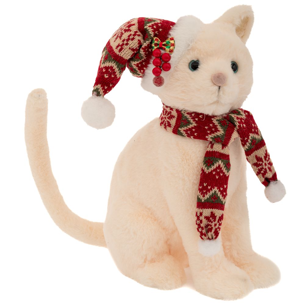 ΛΕΥΚΗ ΥΦΑΣΜΑΤΙΝΗ ΚΑΘΙΣΤΗ ΓΑΤΟΥΛΑ ΜΕ ΚΟΚΚΙΝΟ ΣΚΟΥΦΟ ΚΑΙ ΚΑΣΚΟΛ 25Χ19Χ32ΕΚ