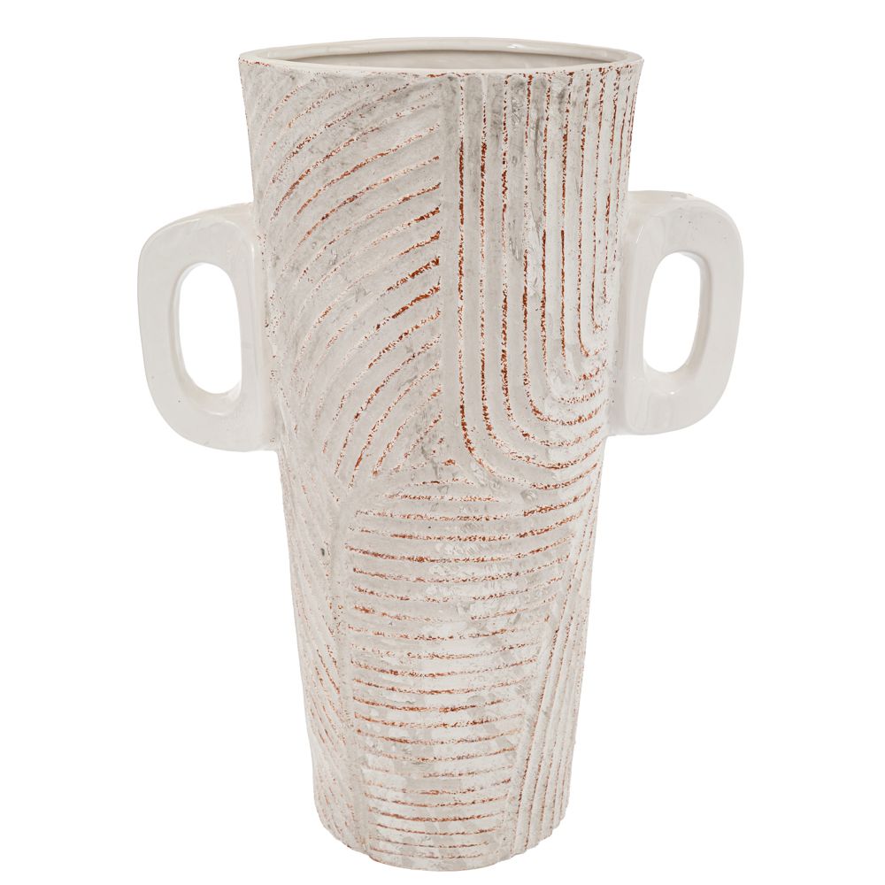 Κεραμικό βάζο με χερούλια σε λευκό με κεραμυδί πινελιές