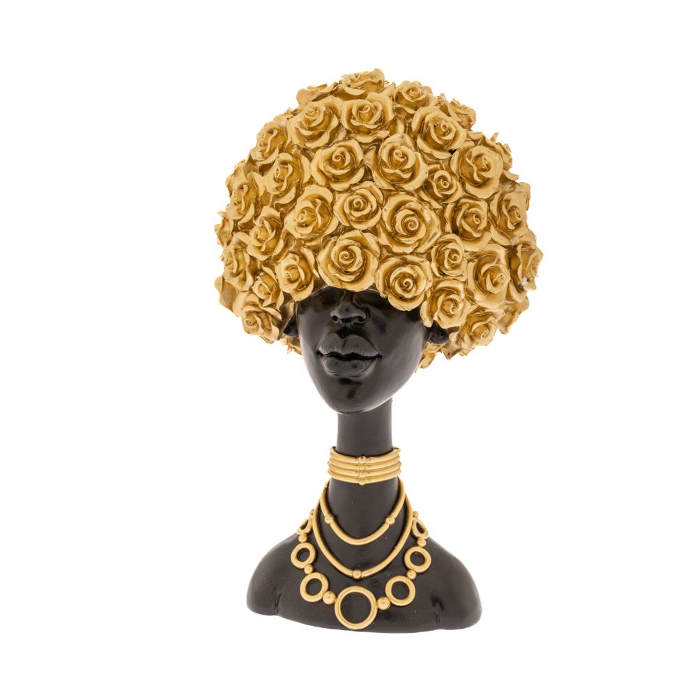 ΜΑΥΡΗ ΠΟΛΥΡΕΖΙΝ ΦΙΓΟΥΡΑ ΑΦΡΙΚΑΝΑΣ ΜΕ ΧΡΥΣΑ ΛΟΥΛΟΥΔΙΑ ΣΤΑ ΜΑΛΛΙΑ ΚΑΙ ΧΡΥΣΟ ΚΟΛΙΕ 19,5Χ12Χ32ΕΚ