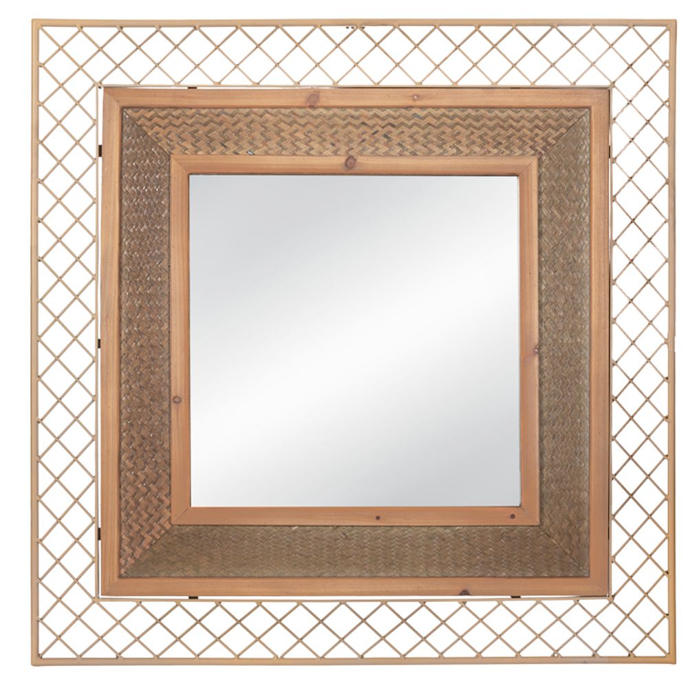 Μπεζ τετράγωνος καθρέφτης τοίχου. Αποτελείται από ξύλο και μέταλλο και έχει πλέγμα στο πλαίσιο. Οι διαστάσεις του είναι 80×80εκ και αποτελεί μία μοντέρνα πρόταση που μπορεί να διακοσμήσει οποιοδήποτε χώρο του σπιτιού σας.
