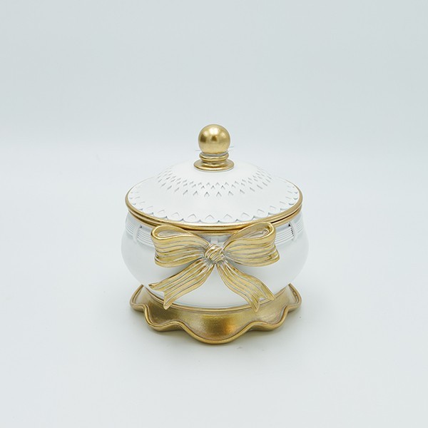 ΜΠΙΖΟΥΤΙΕΡΑ ΑΝΤΙΚΕ ΜΕ ΦΙΟΓΚΟ ΠΟΛΥΡΕΖΙΝ ΛΕΥΚΟ-ΧΡΥΣΟ 13.5×12.5×12.5cm