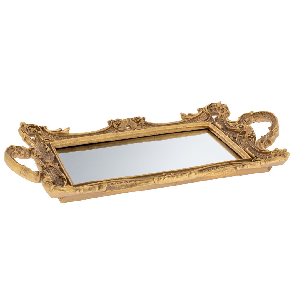 Μπρονζέ σκαλιστός δίσκος κατασκευασμένος από πολυρεζίνη με χερούλια και επιφάνεια καθρέφτη.