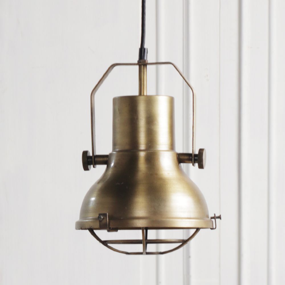 Κρεμαστό μεταλλικό φωτιστικό οροφής σε μπρούτζινο χρώμα. Με industrial εμφάνιση που χαρίζει κομψότητα. Οι διαστάσεις του είναι 21×31εκ. και είναι κατασκευασμένο στην Ινδία. Διαθέτει υποδοχή για έναν λαμπτήρα.