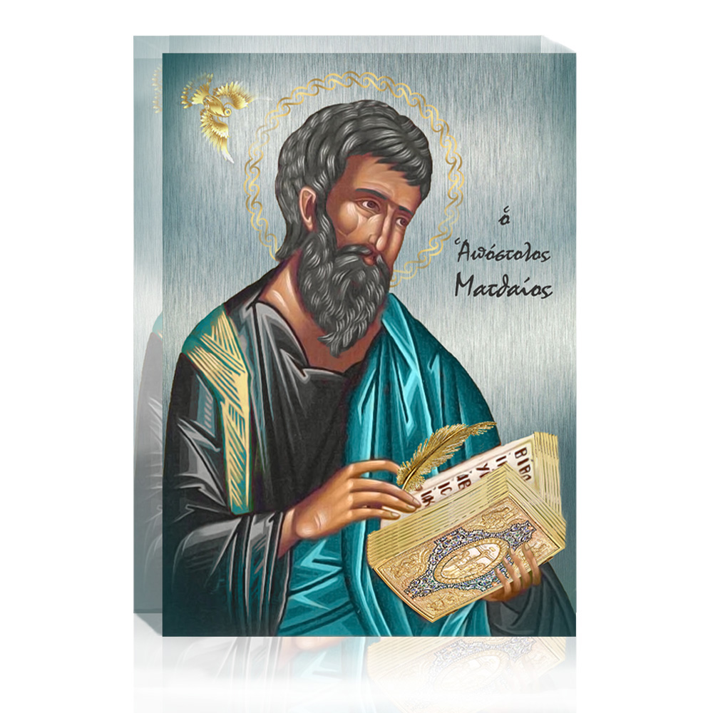 - Στον Άγιο Ματθαίο οφείλει η Εκκλησία μας το πρώτο κατά σειρά στην Καινή Διαθήκη Ευαγγέλιο, που γράφτηκε το 64 μ.Χ.. Ο Απόστολος και Ευαγγελιστής Ματθαίος, γιός του Αλφαίου από τη Γαλιλαία, πριν γίνει μαθητής του Κυρίου Ιησού Χριστού, ονομαζόταν Λευίς.Ήταν τελώνης στο επάγγελμα.