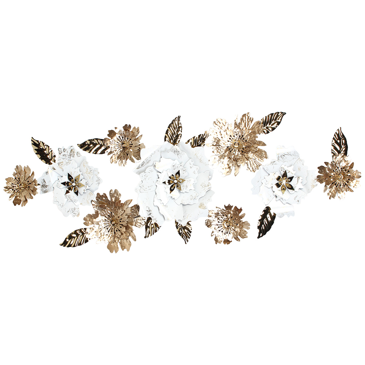 Πίνακας τοίχου μεταλλικός 150Χ55 εκ. Λευκός Χρυσός με λουλούδια και φύλλα